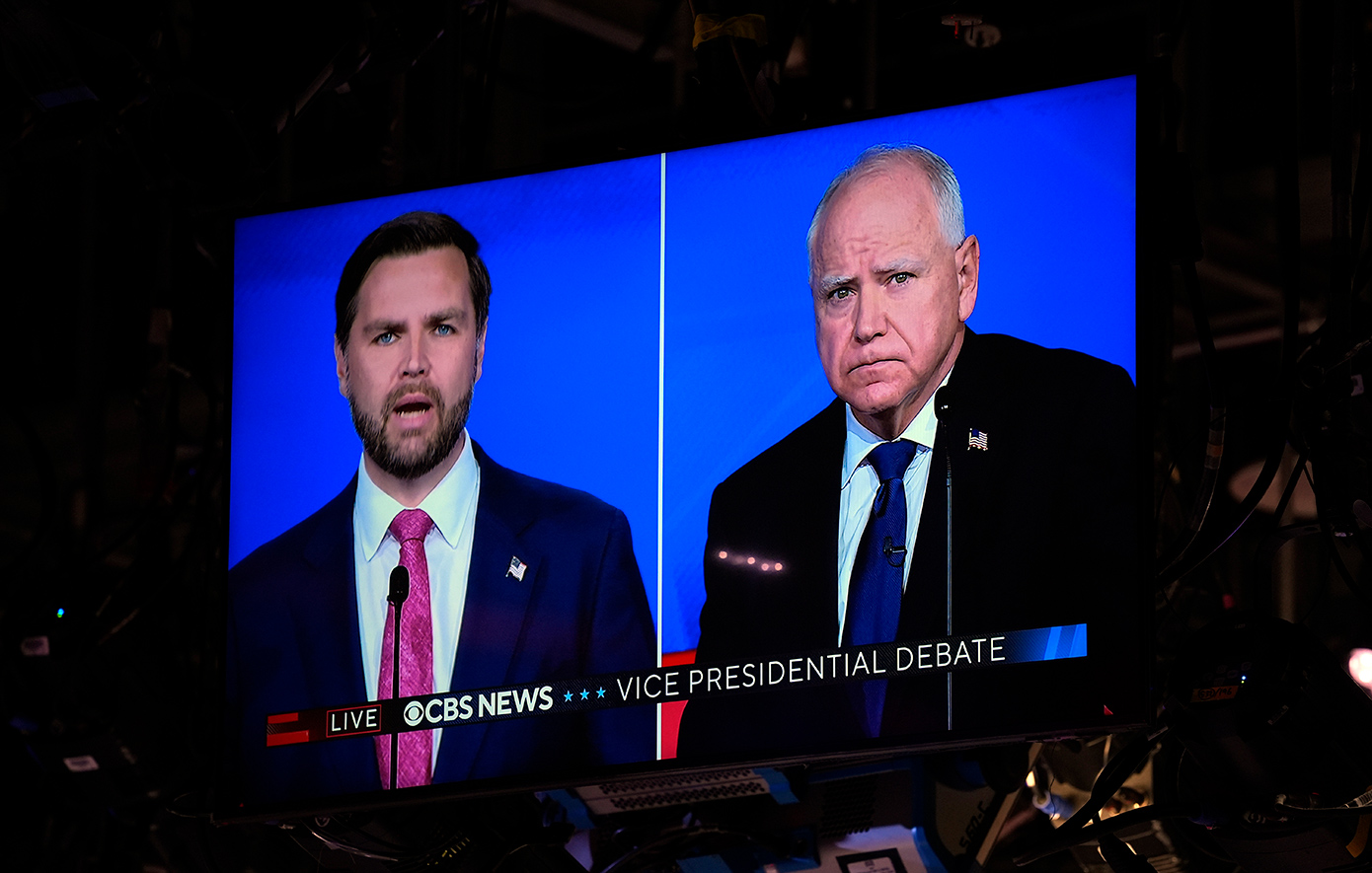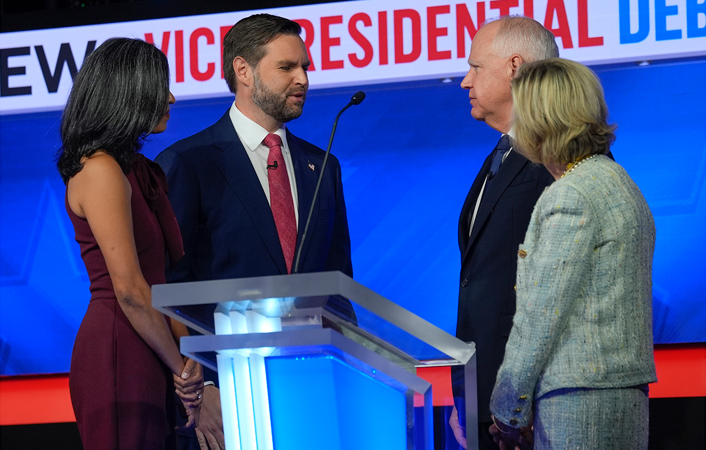 Οι δύο αντίπαλοι, που έχουν επιτεθεί ο ένας στον άλλον στη διάρκεια της προεκλογικής εκστρατείας, διατήρησαν ήρεμο τόνο και προτίμησαν να επικεντρώσουν τα πυρά τους στους υποψήφιους προέδρους, τη Δημοκρατική αντιπρόεδρο, Κάμαλα Χάρις, και τον Ρεπουμπλικάνο, Ντόναλντ Τραμπ.