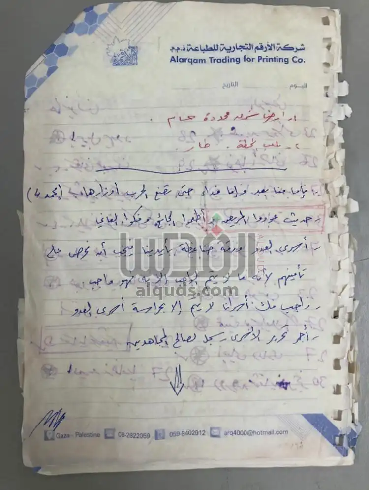 Το δίκτυο Al Quds δημοσιεύει έγγραφα του Γιαχία Σινουάρ, στα οποία, όπως λέει, αναγράφονται στοιχεία των ισραηλινών ομήρων και οδηγίες προς τα μέλη της Χαμάς. Το παλαιστινιακό μέσο δημοσίευσε τρία έγγραφα που αποδίδονται στον Γιαχία Σινουάρ, χωρίς να διευκρινίζεται το πότε γράφηκαν αυτές οι σημειώσεις.