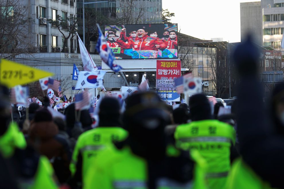 Εκατοντάδες οπαδοί του Γιουν, ανάμεσά τους γνωστοί youtubers της άκρας δεξιάς, καθώς και ευαγγελικοί χριστιανοί ιεροκήρυκες, είχαν κατασκηνώσει την περασμένη νύκτα κοντά στην προεδρική κατοικία και μερικοί οργάνωσαν νυκτερινές προσευχές υπέρ του Γιουν.