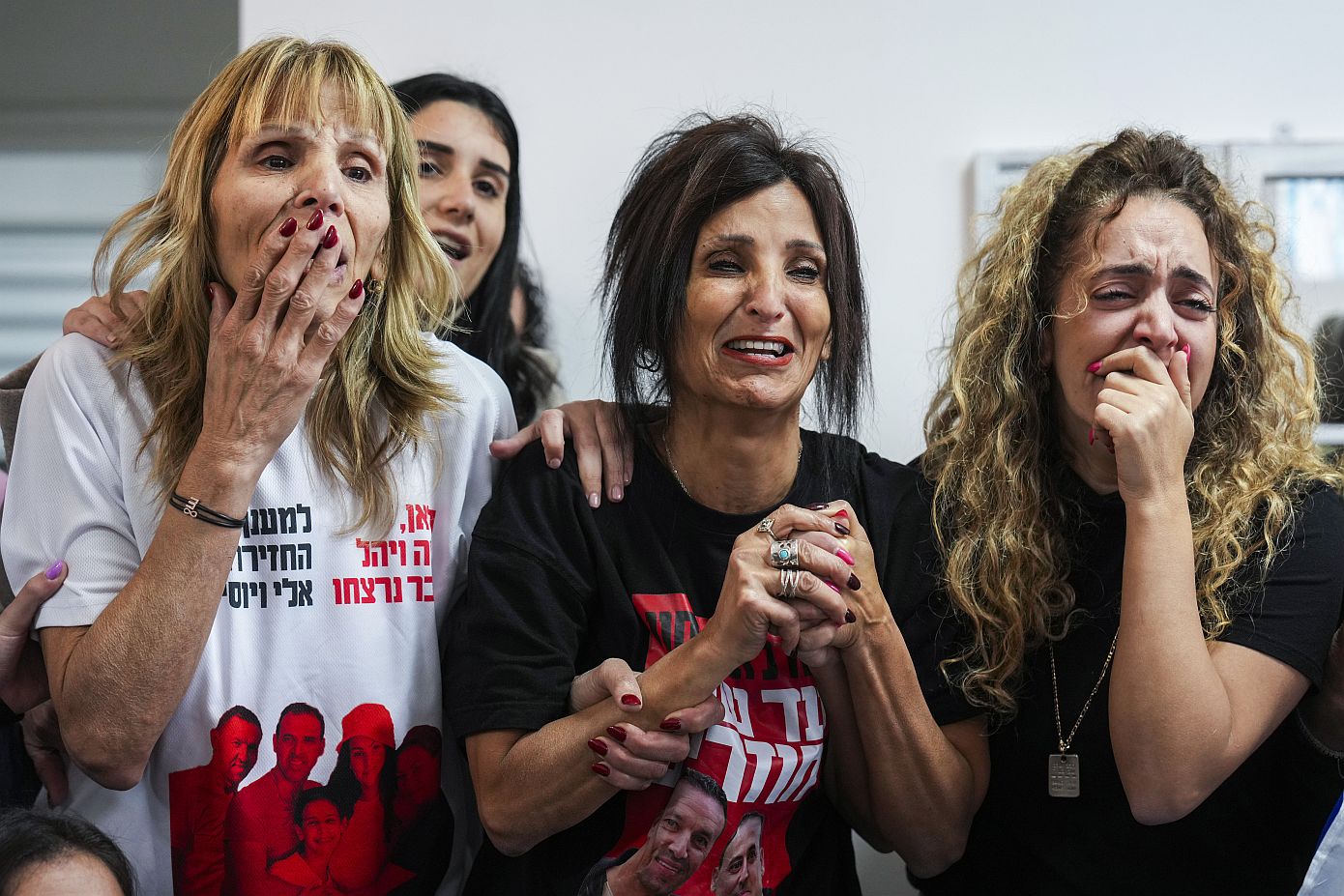 Ο 34χρονος Ορ Λεβί, ο 52χρονος Ελί Σαραμπί και ο 56χρονος Οχάντ Μπεν Αμί μοιάζουν με σκιές του εαυτού τους -εξαντλημένοι, εμφανώς αδυνατισμένοι και με μαύρους κύκλους γύρω από τα μάτια τους, αφού ήταν επί 16 μήνες υπό περιορισμό, ενώ η τρομοκρατική οργάνωση διαπραγματευόταν την απελευθέρωση Παλαιστίνιων κρατουμένων.