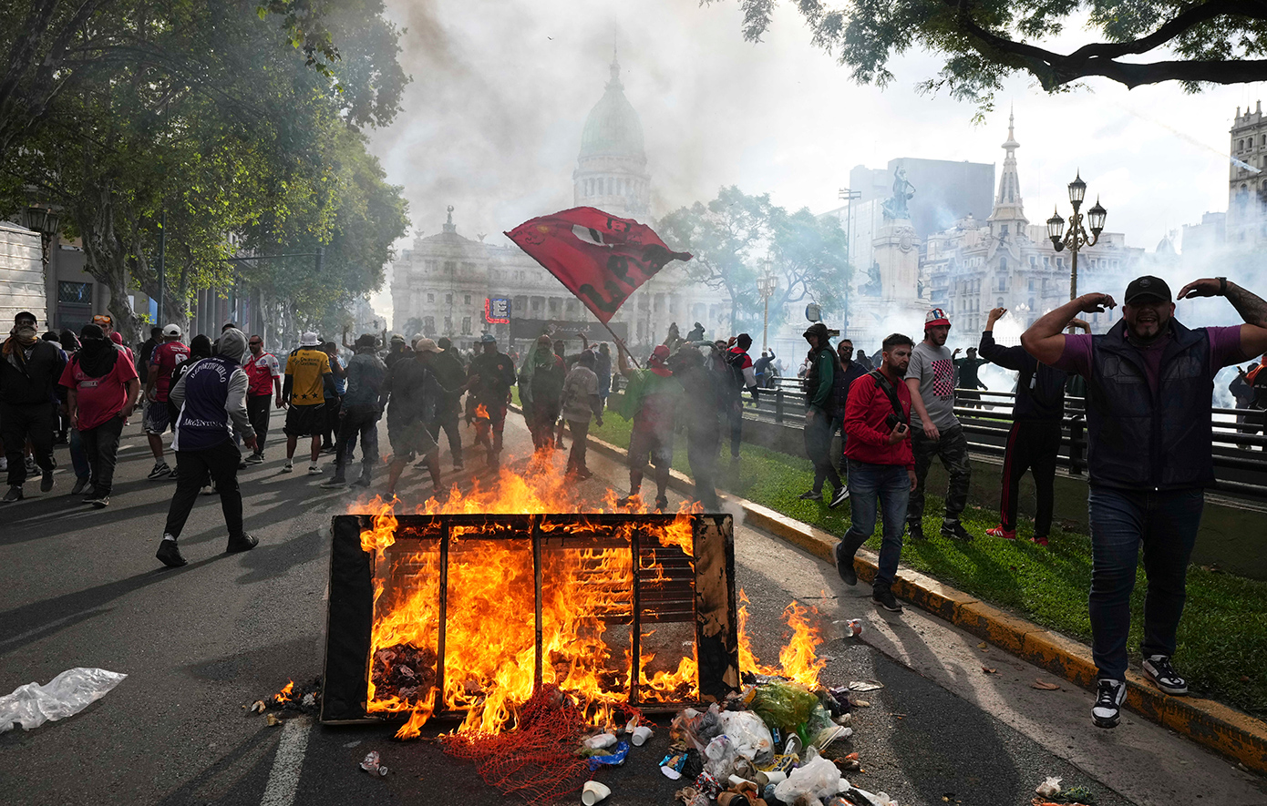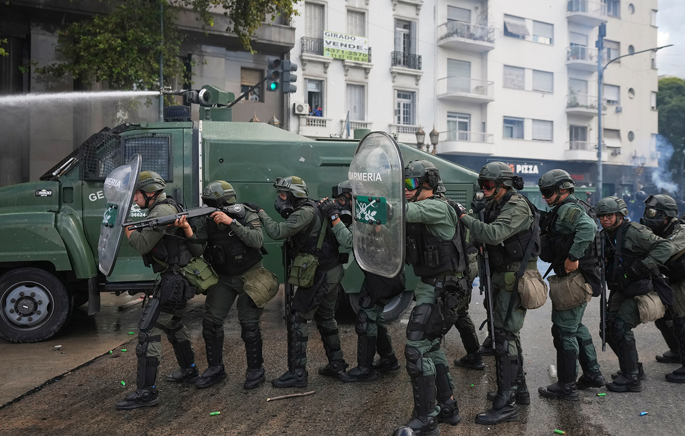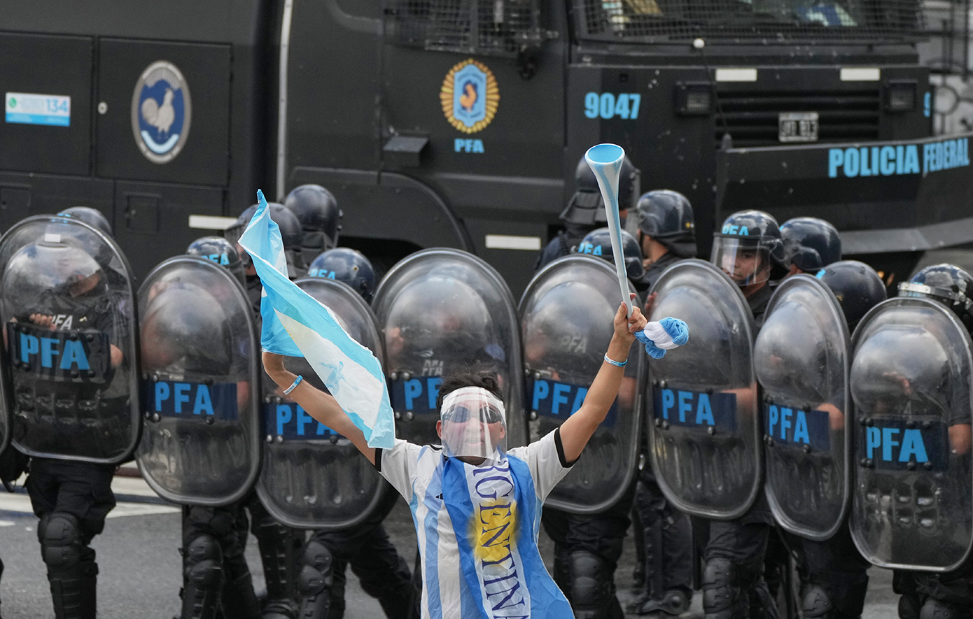 Το υπουργείο Ασφάλειας της Αργεντινής έκανε λόγο για 124 συλλήψεις σε δελτίο Τύπου που έδωσε στη δημοσιότητα, προσθέτοντας πως 26 άνδρες των δυνάμεων ασφαλείας τραυματίστηκαν και διακομίστηκαν σε νοσοκομείο, ανάμεσά τους ένας με τραύμα από σφαίρα που χρειάστηκε να χειρουργηθεί.