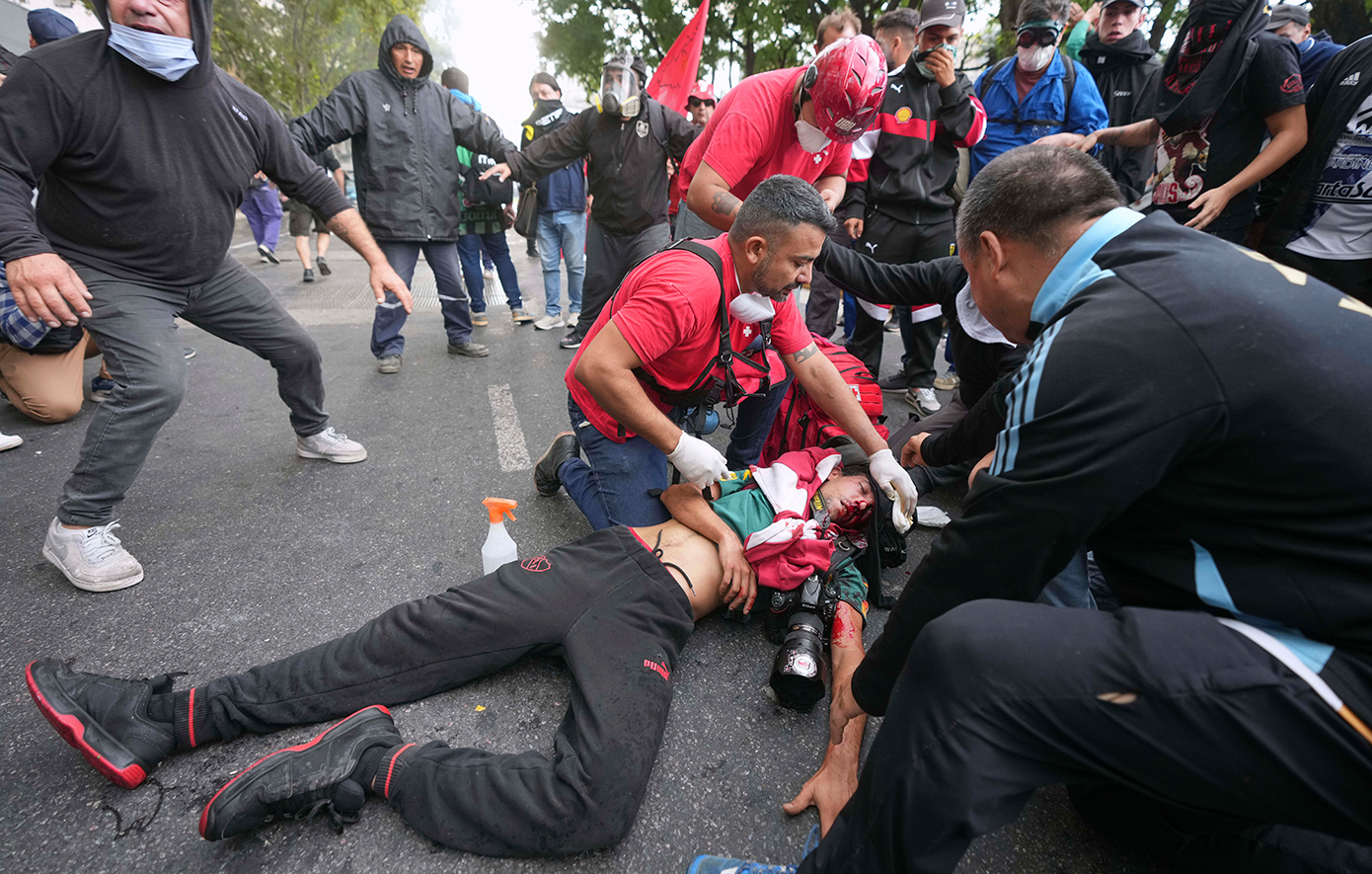Ωστόσο, μέσα ενημέρωσης της Αργεντινής τόνισαν πως ο τραυματίας σε σοβαρή κατάσταση είναι φωτοειδησεογράφος που κάλυπτε τη διαδήλωση και χτυπήθηκε από δακρυγόνο στο κεφάλι.