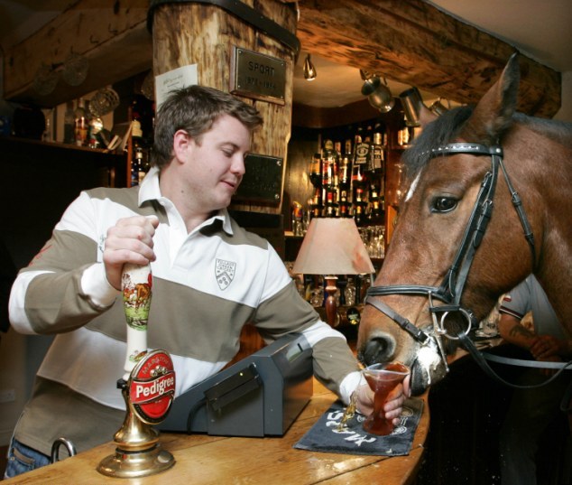 Το άλογο που βλέπετε, συνηθίζει να συχνάζει σε ένα country pub και να πίνει το ποτό του κάνοντας παρέα με τους υπόλοιπους θαμώνες, που έχουν συνηθίσει την παρουσία του.