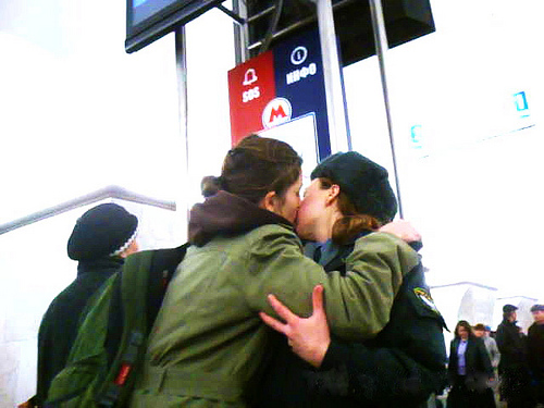 Η ρωσική οργάνωση «Βόινα» (στα ρωσικά σημαίνει πόλεμος), έδωσε σήμερα στη δημοσιότητα ένα βίντεο που παρουσιάζει νεαρές κοπέλες να αγκαλιάζουν και να φιλούν αστυνομικίνες.