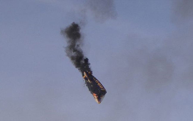 Στις φλόγες τυλίχτηκε σε απόσταση μόλις έξι μέτρων από τη γη ένα Ζέπελιν την Κυριακή το βράδυ στη Γερμανία αφήνοντας άναυδους όλους εκείνους που παρακολούθησαν το ατυχές γεγονός.