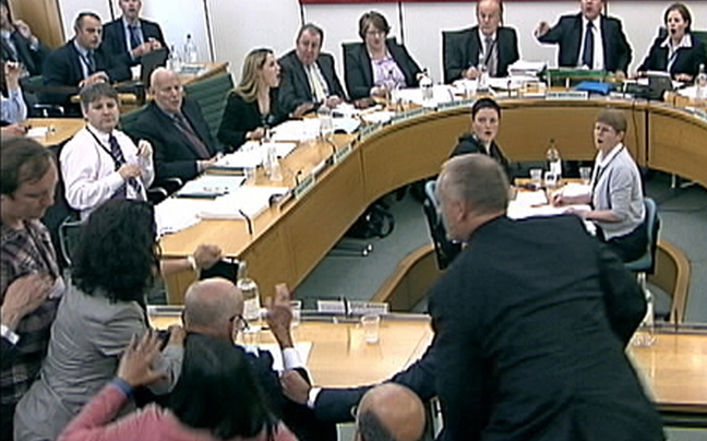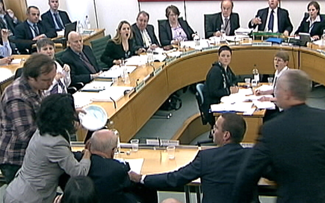 Διακόπηκε πριν από μερικά λεπτά η κατάθεση του μεγιστάνα των μέσων ενημέρωσης, Ρούμπερτ Μέρντοχ, στη βρετανική Βουλή αναφορικά με το σκάνδαλο των υποκλοπών, επειδή ένας άντρας επιχείρησε να του επιτεθεί.
