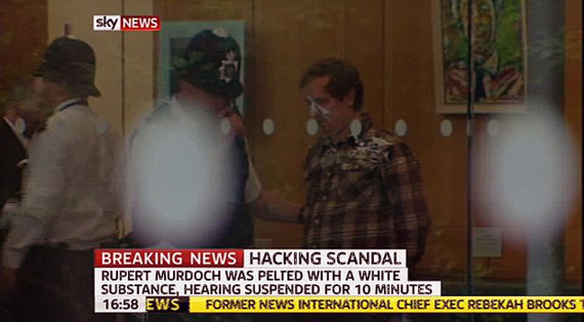 Σύμφωνα με το πρακτορείο Press Association ο δράστης έριξε στον Μέρντοκ ένα πιάτο με “λευκό αφρό”, κατά πάσα πιθανότητα αφρό ξυρίσματος.