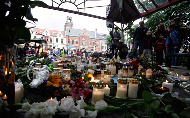 «Απόψε οι δρόμοι είναι γεμάτοι με αγάπη», δήλωσε ο διάδοχος του θρόνου πρίγκιπας Χάακον στο πλήθος, που συγκεντρώθηκε για να σηματοδοτήσει την αντίθεση του στη βομβιστική επίθεση και το μακελειό της Παρασκευής.