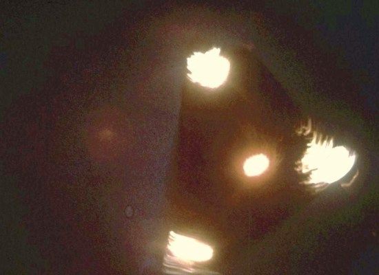 Και εδώ είναι η ίδια φωτογραφία όταν αύξησαν την φωτεινότητά της. Διακρίνεται ένα τριγωνικό αντικείμενο με 3 φώτα στις γωνίες και 1 κεντρικό. Εξετάστηκε από επιστημονικές ομάδες των πολεμικών αεροποριών τόσο σε Γαλλία, Αμερική και Βέλγιο για την γνησιότητά της.