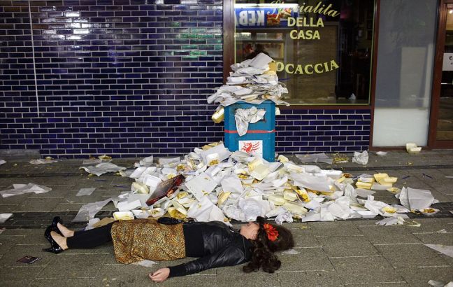 Γυναίκες και άντρες σέρνονται στα πεζοδρόμια μη μπορώντας να περπατήσουν από το μεθύσι. Βγάζουν τα ρούχα τους και ντύνονται σαν καρναβάλια.
