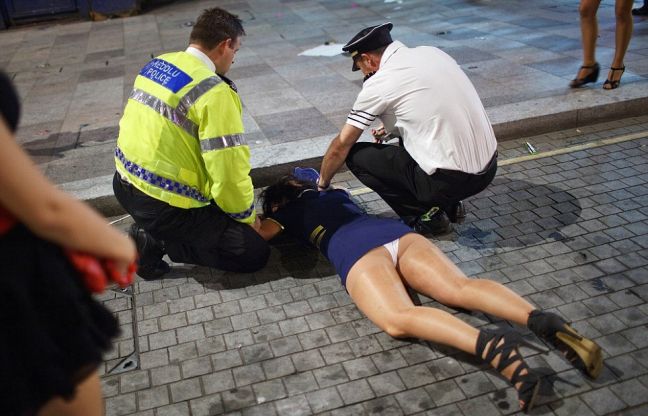 Οι εικόνες αυτές θυμίζουν καλοκαίρι στη Ζάκυνθο, τη Ρόδο ή την Κρήτη όπου οι βρετανοί τουρίστες πίνουν ακατάπαυστα, μεθούν και στη συνέχεια κάνουν στην κυριολεξία ό,τι τους κατέβει στο κεφάλι.