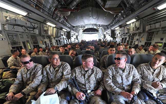 Αναρωτιέται κανείς αν γνωρίζουν τι ακριβώς πηγαίνουν να αντιμετωπίσουν οι Αμερικανοί στρατιώτες που απαθανατίστηκαν λίγο πριν απογειωθούν από την αμερικανική βάση στην περιοχή Manas του Κιργιστάν με προορισμό το Αφγανιστάν.