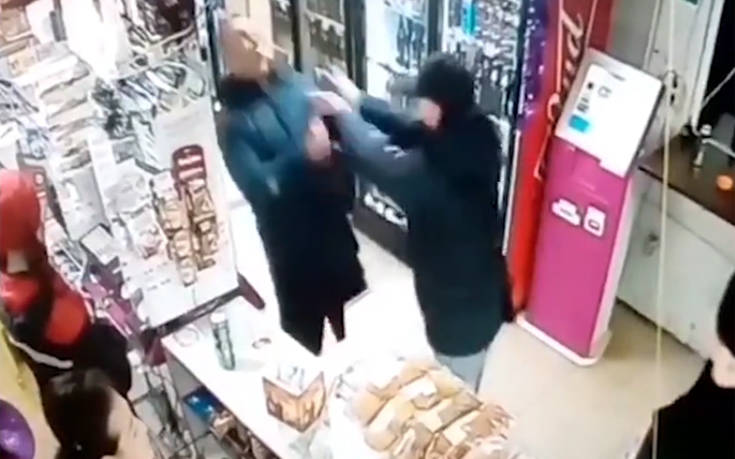 Κάμερα ασφαλείας σε μίνι μάρκετ της Ρωσίας κατέγραψε τη σοκαριστική στιγμή που ένας ανυπόμονος πελάτης αρχίζει να χτυπάει έναν άνδρα, ο οποίος θεωρούσε ότι τον καθυστερούσε στην ουρά υπερβολικά.
