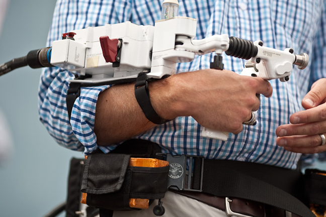 Παρά το μη-επανδρωμένο βέβαια του πράγματος, ο άνθρωπος δεν θα αποκλειστεί από τη λειτουργία του. Ο πιλότος της Northrop, Gerrit Everson, το αποδεικνύει: φορά στο χέρι του το λευκό αυτό κουτί, που ονομάζεται Control Display Unit, που παίζει φυσικά τον ρόλο τηλεχειριστηρίου. Προσοχή όμως, ο χειρισμός από τον πιλότο γίνεται μόνο για τις μανούβρες εδάφους, στον αέρα το X-47 είναι πλήρως αυτόνομο.