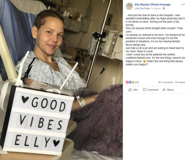 Η Elly Mayday, ένα plus size μοντέλο που είχε δημόσια παρουσιάσει τη μάχη της με τον καρκίνο στις ωοθήκες, πέθανε σε ηλικία 30 ετών, περίπου 6 χρόνια μετά την πρώτη διάγνωση της ασθένειας.