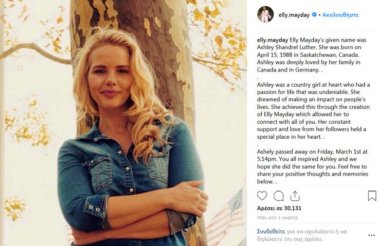 «Η Ashley ήταν ένα κορίτσι της επαρχίας στην καρδιά που είχε αναντίρρητο πάθος για τη ζωή. Ονειρευόταν να επηρεάσει τις ζωές των ανθρώπων. Το έκανε με τη δημιουργία της Elly Mayday που της επέτρεψε να συνδεθεί με όλους εσάς» έγραψαν.
