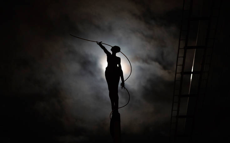 Το παιχνίδι του φακού με το γλυπτό και την πανσέληνο στις Βρυξέλλες.