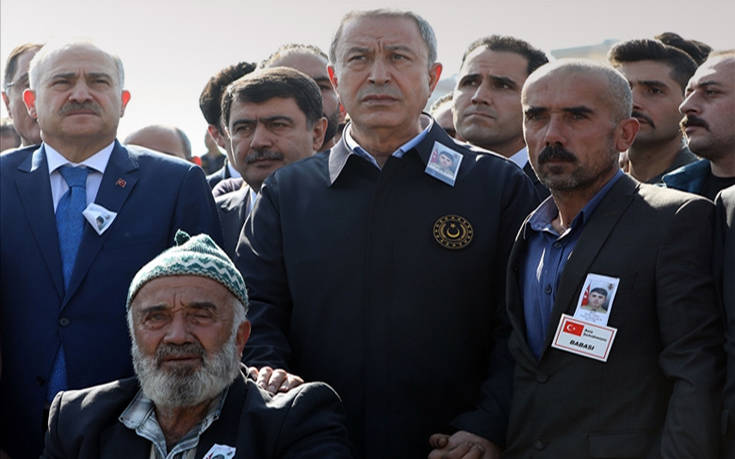 Αξίζει να αναφερθεί πως το τουρκικό υπουργείο Άμυνας προκειμένου να «ηρωοποιήσει» την ηγεσία του, τονίζει στην σχετική ανακοίνωση πως ο Ακάρ και οι στρατηγοί του, πήγαν στην κηδεία έχοντας ακόμα στα παπούτσια τους την σκόνη από το μέτωπο όπου είχαν μεταβεί για να συντονίσουν την επιχείρηση.