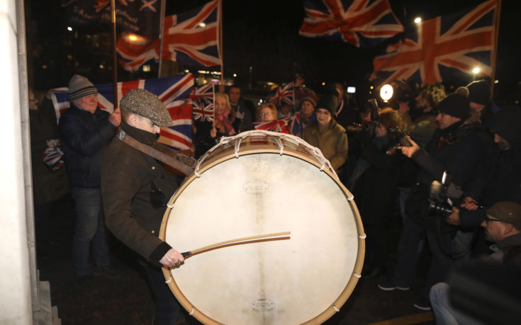 Μετά τις 23:00 (τοπική ώρα) μπροστά από το βρετανικό κοινοβούλιο υποστηρικτές του Brexit φιλιόντουσαν, αγκαλιάζονταν και τραγουδούσαν «God Save the Queen», κρατώντας βρετανικές σημαίες εν μέσω των καπνών από τα πυροτεχνήματα.