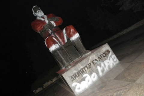 Τρία άτομα «έντυσαν» με χρώματα Άη Βασίλη άγαλμα του Ντιμιτάρ Μπλαγκόεφ, πολιτικού και φιλόσοφου, ιδρυτή του οργανωμένου σοσιαλιστικού κινήματος στη Βουλγαρία και του πρώτου σοσιαλδημοκρατικού κόμματος στη Βαλκανική χερσόνησο, αλλά και εκ των υπέρμαχων της ιδέας ίδρυσης μιας Βαλκανικής Ομοσπονδίας.