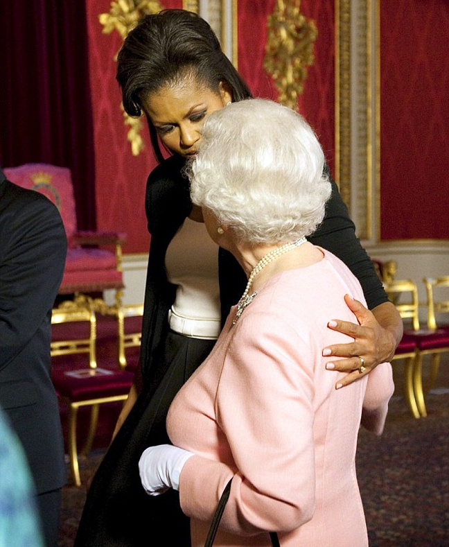 Έτσι την είχε «πατήσει» το 2009 και η Μισέλ Ομπάμα που αγκάλιασε με θέρμη τη βασίλισσα Ελισάβετ. Αλλά αυτό που σόκαρε τους τυπολάτρες ήταν πως η βασίλισσα είχε τότε ανταποδώσει την κίνηση!