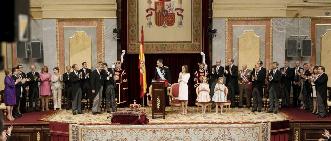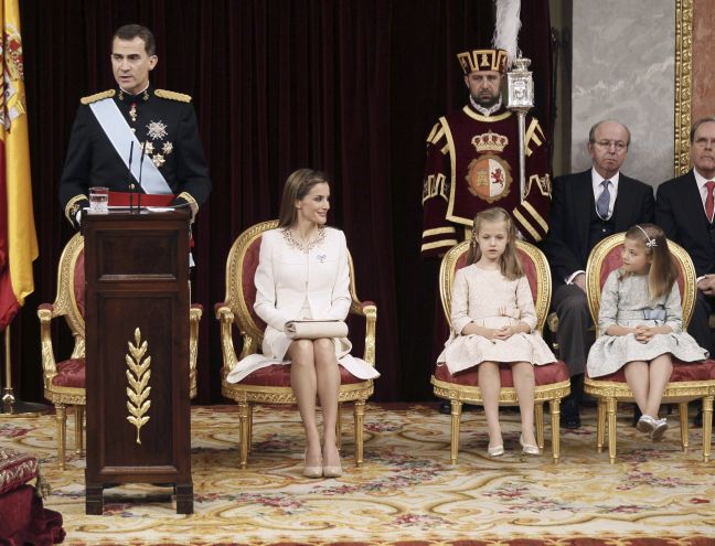 Μοντέρνος και καλλιεργημένος, ο νέος βασιλιάς φορώντας τη μεγάλη στρατιωτική στολή και τη ζώνη από κόκκινο μετάξι του αρχηγού των ενόπλων δυνάμεων που παρέλαβε από τον πατέρα του Χουάν Κάρλος, ο οποίος χθες υπέγραψε την παραίτησή του, ορκίστηκε πίστη στο Σύνταγμα του 1978, το θεμέλιο της ισπανικής δημοκρατίας.