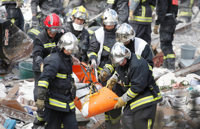 Οι διασώστες συνεχίζουν την αναζήτηση εγκλωβισμένων στα ερείπια της πολυκατοικίας εκτιμώντας όμως ότι επιζώντες μπορούν να βρεθούν κάτω από τα χαλάσματα εντός ενός χρονικού διαστήματος 12 έως 24 ωρών από τη στιγμή της κατάρρευσης η οποία έγινε χθες Κυριακή στις 08:00 τοπική ώρα (09:00 ώρα Ελλάδας). Στο σημείο του δυστυχήματος μετέβει ο γάλλος υπουργός Εσωτερικών Μπερνάρ Καζανόβ.