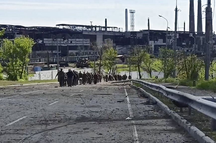 Δημοσιοποίησε φωτογραφίες ομάδων ένστολων που βγαίνουν, ορισμένοι με επιδέσμους και πατερίτσες, έπειτα από τη μακρά μάχη στο εργοστάσιο που το Κίεβο χαρακτηρίζει σύμβολο «της αντίστασης». Οι ουκρανικές αρχές λένε ότι η Μαριούπολη καταστράφηκε κατά το 90% και σκοτώθηκαν τουλάχιστον 20.000 άνθρωποι.