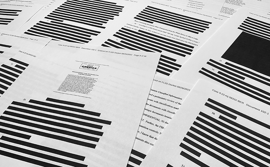 Το υπουργείο Δικαιοσύνης των ΗΠΑ έδωσε σήμερα στη δημοσιότητα την ένορκη βεβαίωση που αναφέρει τους λόγους της πρόσφατης έρευνας του FBI στην κατοικία του πρώην προέδρου Ντόναλντ Τραμπ στη Φλόριντα, όπου βρέθηκαν και κατασχέθηκαν εκατοντάδες απόρρητα έγγραφα.