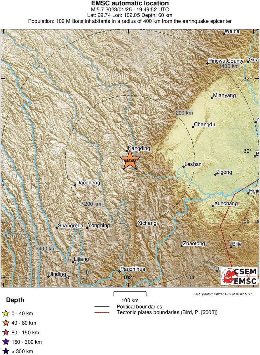 Σεισμική δόνηση μεγέθους 5,7 βαθμών σημειώθηκε πριν από λίγο στην επαρχία Σιτσουάν της Κίνας, όπως μεταδίδει το πρακτορείο Reuters επικαλούμενο το Ευρωμεσογειακό Σεισμολογικό Κέντρο (EMSC).