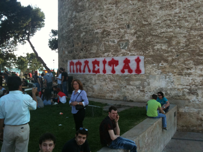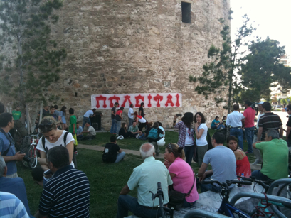 Η συμμετοχή του κόσμου μπορεί να είναι μικρότερη σε σχέση με χτες, ωστόσο οι συγκεντρωμένοι Θεσσαλονικείς που έχουν «καταλάβει» την πλατεία γύρω από το Λευκό Πύργο εκτιμούν ότι σε λίγη ώρα που θα κλείσουν τα εμπορικά καταστήματα ο κόσμος θα αυξηθεί, για να στείλει και σήμερα το «μήνυμά» του στην κυβέρνηση, ενάντια στα σκληρά οικονομικά μέτρα.