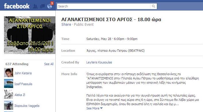 Ακολουθώντας το κίνημα των «αγανακτισμένων» που εδώ και τρεις ημέρες δίνει δυναμικό «παρών» σε πολλές πόλεις της ελληνικής επικράτειας, έτσι και το Άργος μπαίνει στο χορό των κινητοποιήσεων το απόγευμα του Σαββάτου στις 6 στην πλατεία Αγίου Πέτρου.