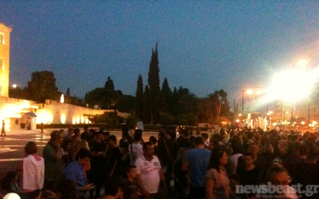 Οι διαδηλωτές δεν δείχνουν καμία διάθεση να αποχωρήσουν από την πλατεία, ενώ η παρουσία της αστυνομίας είναι διακριτική. Χαρακτηριστικές είναι οι φωτογραφίες που δείχνουν ότι οι αστυνομικές δυνάμεις μπροστά από τη Βουλή δεν εμποδίζουν τους συγκεντρωμένους, οι οποίοι περνούν ανάμεσά τους.