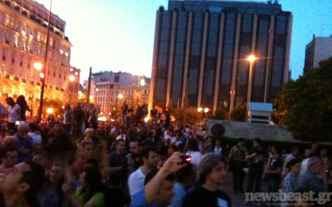 Μεγαλειώδης η διαμαρτυρία των «Αγανακτισμένων» σήμερα με περισσότερους από 60.000 πολίτες να διαμαρτύρονται ειρηνικά αυτή την ώρα στο Σύνταγμα, ενώ κάποιοι κάνουν λόγο ακόμα και για 100.000 συγκεντρωμένους.