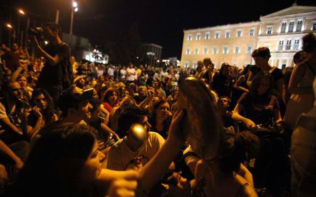 Κάθε φορά που τελειώνει μία ομιλία για να αρχίσει μία ακόμη, χειροκροτούν. Η συζήτηση διαρκεί ώρες, τουλάχιστον μέχρι τα μεσάνυχτα. Στη συνέχεια οι περισσότεροι αποχωρούν για να μείνουν μόνο εκείνοι που έχουν αποφασίσει να ξενυχτούν στο Σύνταγμα και να κοιμούνται στις περισσότερες από 50 σκηνές που έχουν στηθεί εκεί.