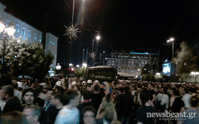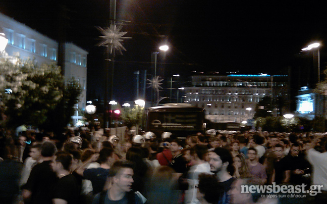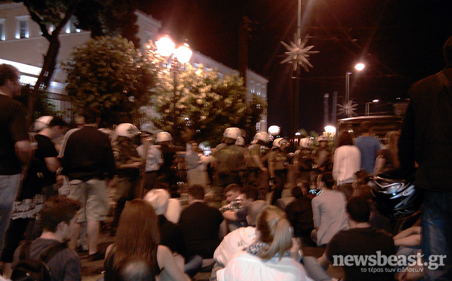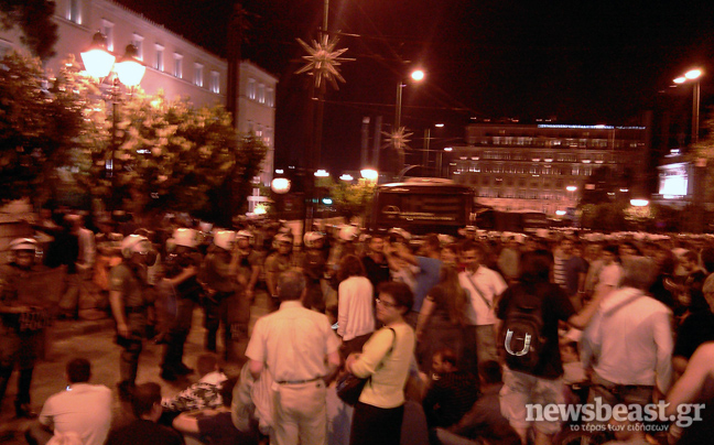 Κλιμακώνονται οι κινητοποιήσεις των Αγανακτισμένων, καθώς πλήθος διαδηλωτών έχει αποκλείσει την είσοδο της Βουλής στη Βασιλίσσης Σοφίας με αποτέλεσμα να έχουν εγκλωβιστεί μέσα βουλευτές και εργαζόμενοι. Τα πνεύματα είναι οξυμένα με την Αστυνομία να προσπαθεί να απομακρύνει τους διαδηλωτές.