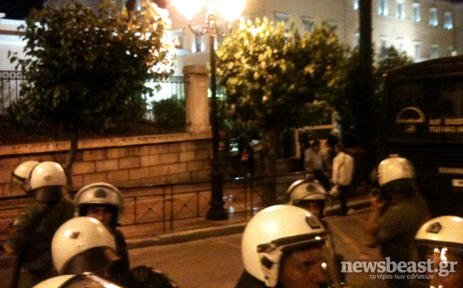 Μετά από προσπάθειες των δυνάμεων των ΜΑΤ κατάφεραν να ανοίξουν ένα δίαυλο διαφυγής για τους εναπομείναντες βουλευτές και αυτήν την ώρα αποχωρούν εν μέσω σφοδρών αποδοκιμασιών.