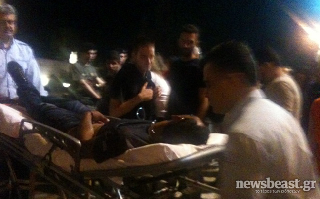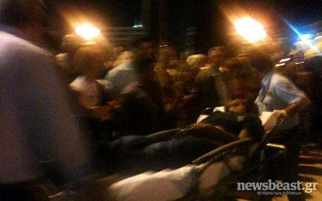 Αμέσως οι παρευρισκόμενοι κάλεσαν ασθενοφόρο, το οποίο μετά από λίγη ώρα τον παρέλαβε προκειμένου να του παρασχεθούν οι πρώτες βοήθειες, ενώ τα ΜΑΤ άνοιξαν το δρόμο για να περάσει.