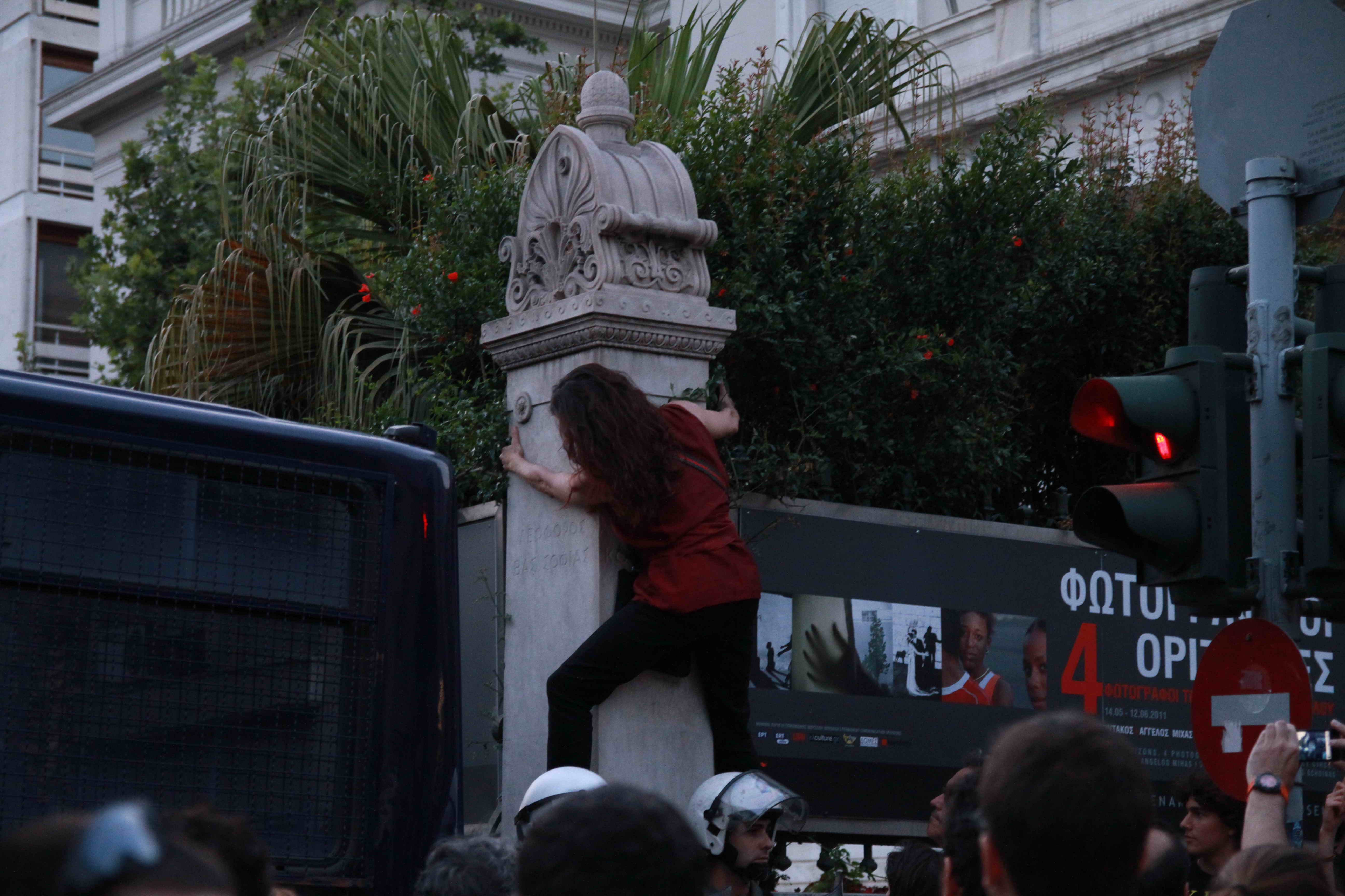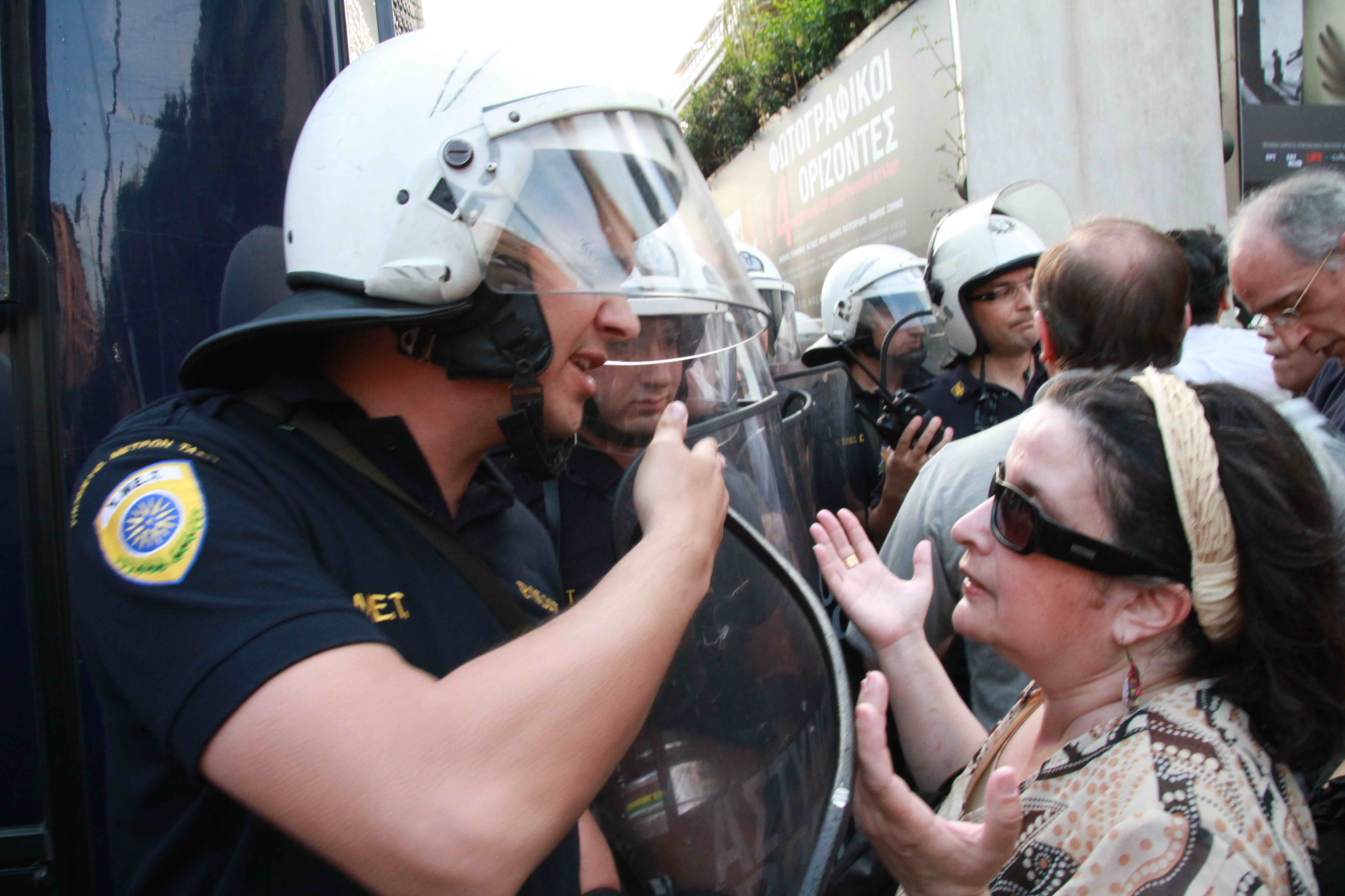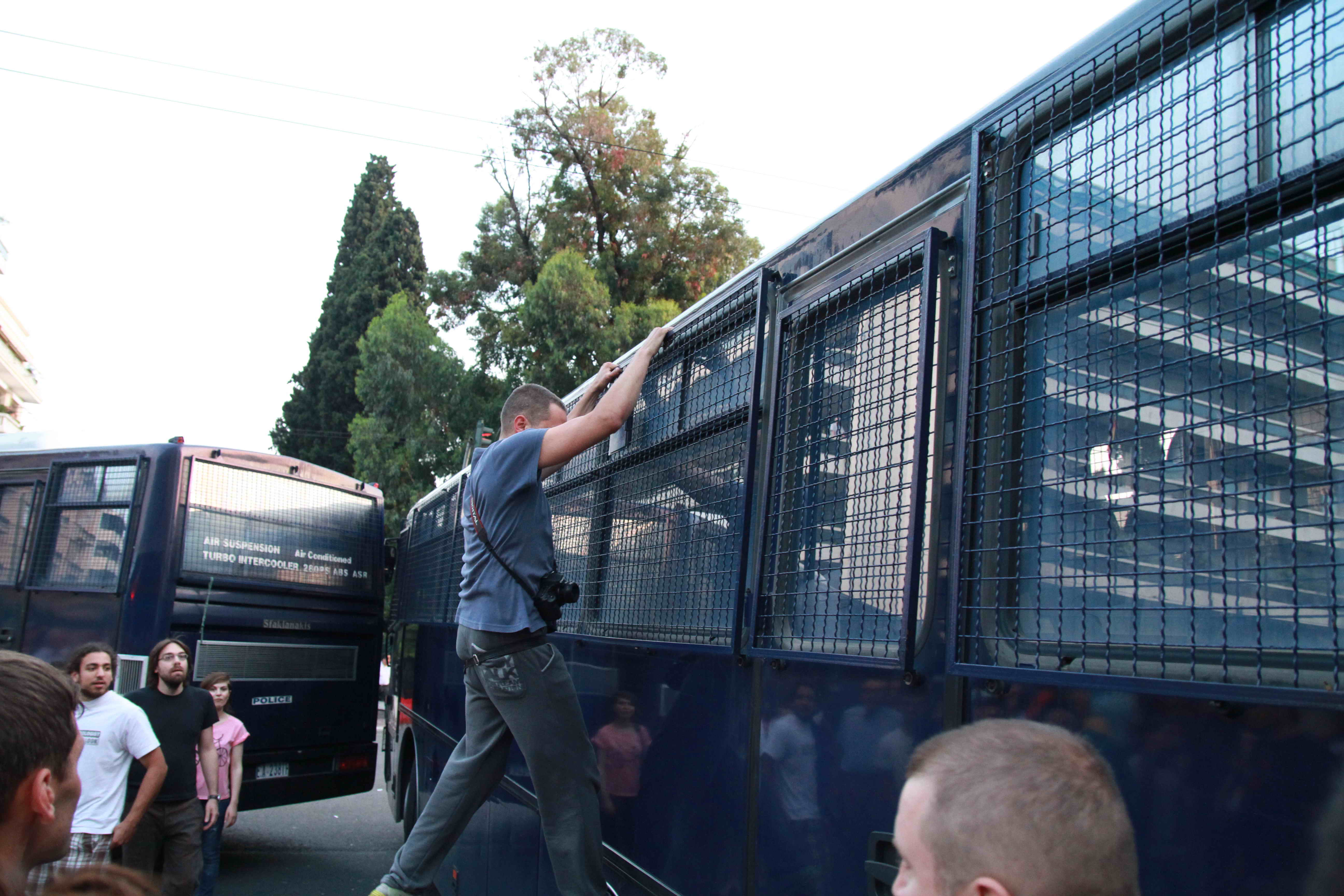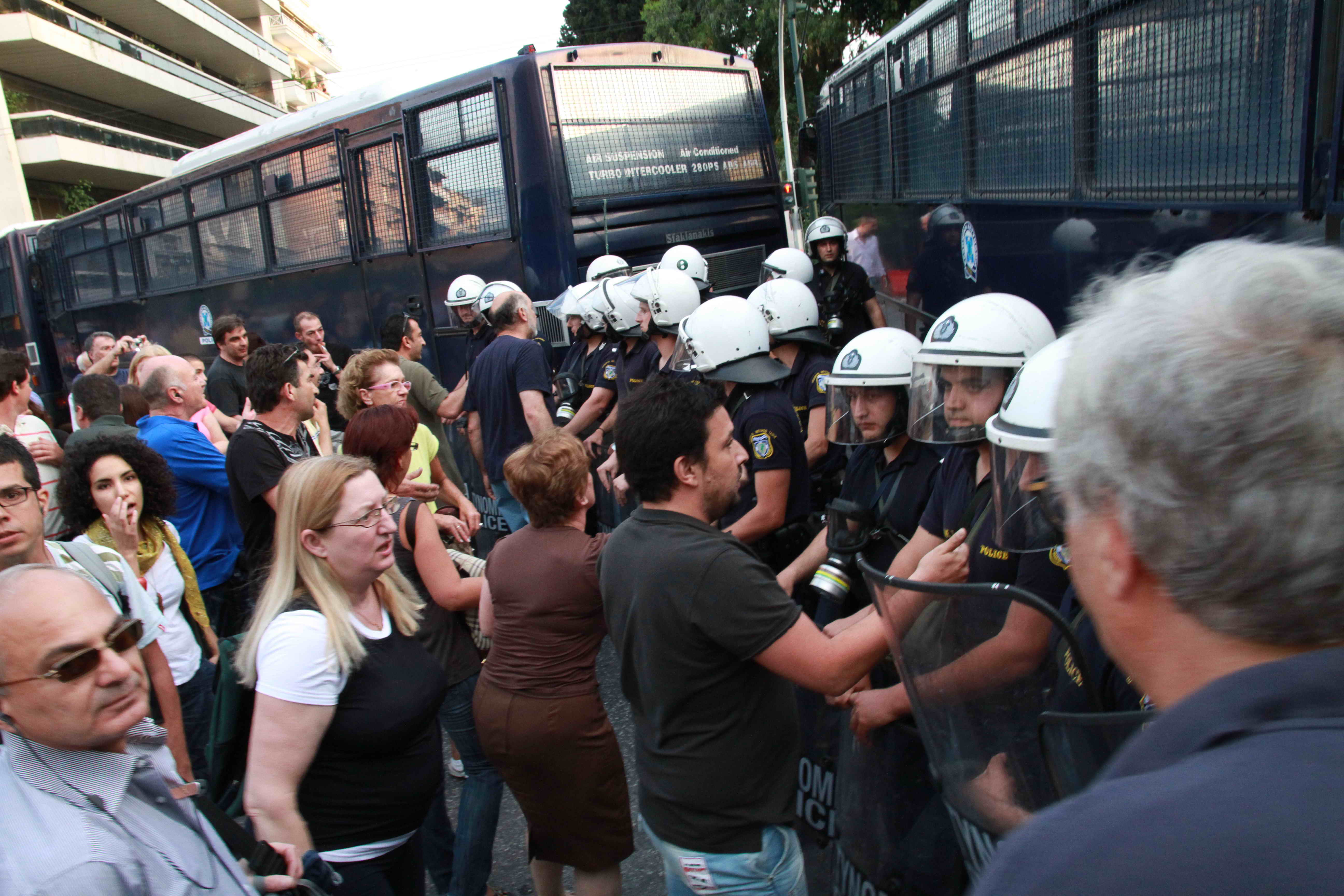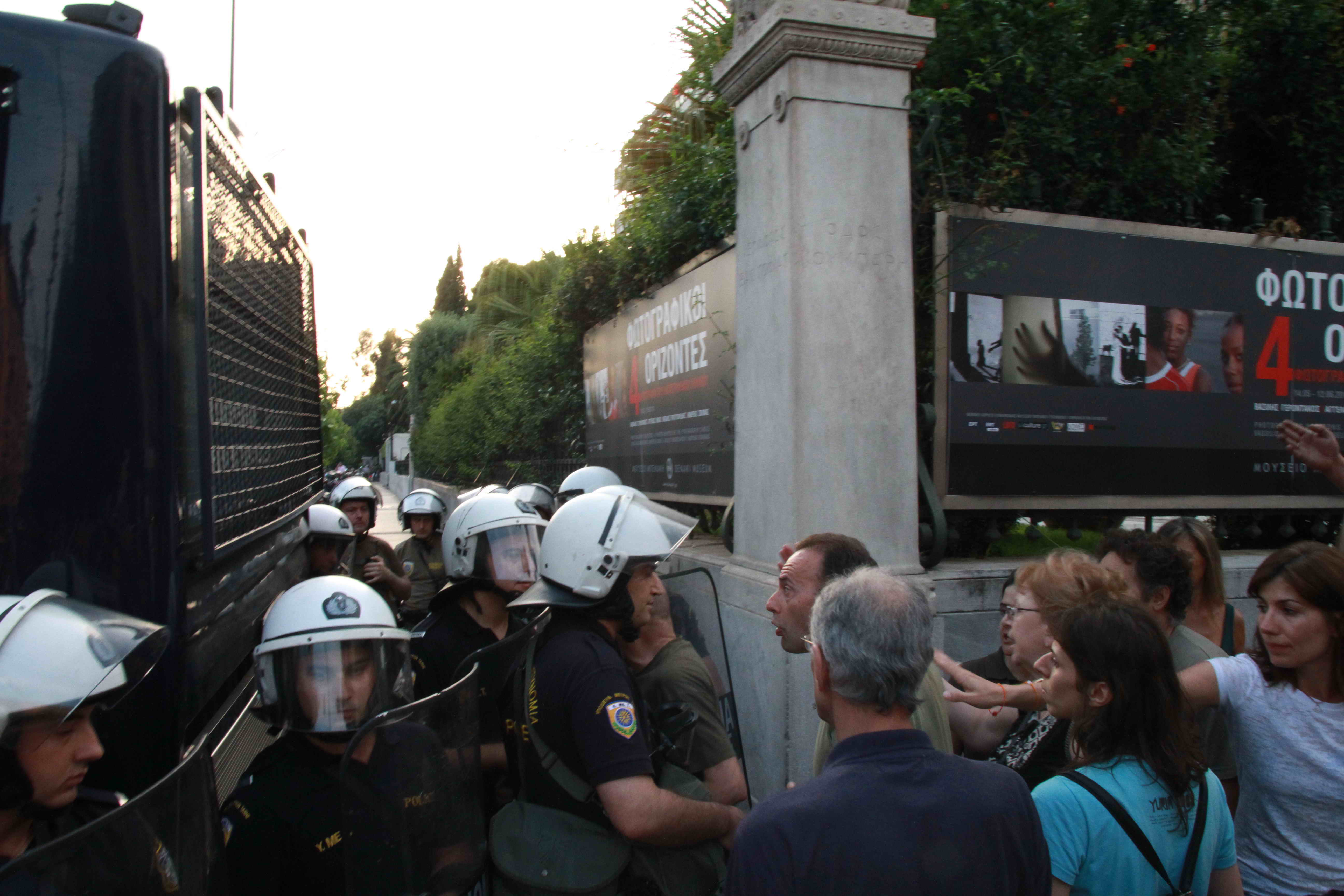 Στην οδό Κουμπάρη και Βασιλίσσης Σοφίας επικρατεί ένταση αυτή τη στιγμή. Ο κόσμος είναι τόσος πολύς που έχει στριμωχτεί σε μια γωνία και απαιτεί από τα ματ να ανοίξουν το δρόμο για να περάσει το συγκεντρωμένο πλήθος.