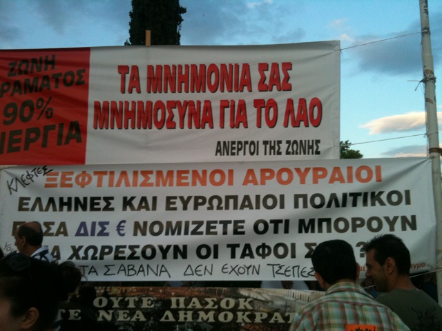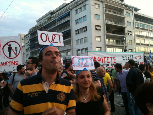 Το σύνθημα που επικρατεί είναι εκτός από το «Κλέφτες, κλέφτες» , το «Ένας είναι ο αρχηγός, ο κυρίαρχος λαός».