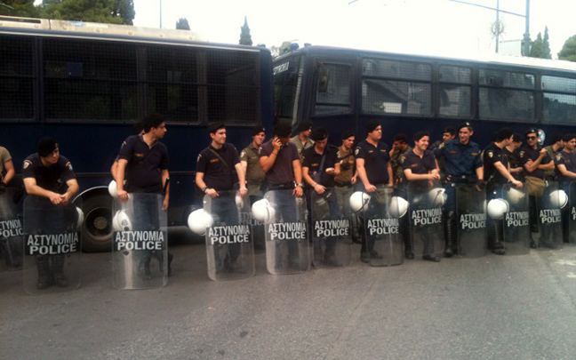 Η κυκλοφορία έχει διακοπεί από νωρίς το πρωί ενώ ισχυρές είναι οι αστυνομικές δυνάμεις.