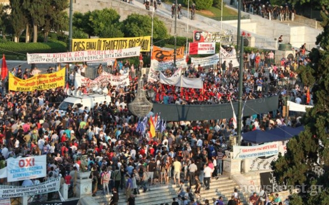 Πριν από λίγη ώρα οι χιλιάδες Αγανακτισμένοι πολίτες και εργαζόμενοι που πραγματοποιούν ειρηνική διαδήλωση διαμαρτυρίας κατά των μέτρων λιτότητας και της ψήφισης του Μεσοπρόθεσμου Προγράμματος, μετά τα σημερινά επεισόδια που προκάλεσαν για άλλη μια φορά κουκουλοφόροι στο κέντρο της Αθήνας, απώθησαν τα μέλη του ΠΑΜΕ που έφτασαν στη Βουλή, μετά από πορεία που ξεκίνησε από τις στήλες του Ολυμπίου Διός.