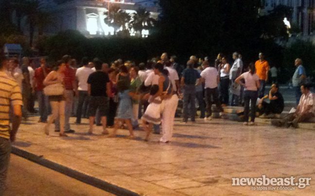 Για 44η μέρα Αγανακτισμένοι πολίτες συγκεντρώθηκαν στο Σύνταγμα, μπροστά από το κτίριο της Βουλής φωνάζοντας συνθήματα εναντίον των βουλευτών, ζητώντας τους να παραιτηθούν.