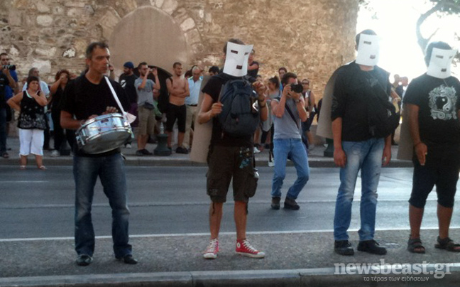 Το Λευκό Πύργο επέλεξαν οι Αγανακτισμένοι για τη σημερινή τους κινητοποίηση ενόψει της 76ης ΔΕΘ.