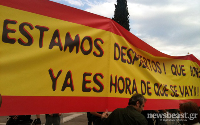 Με το σύνθημα «Κάντε ησυχία μην ξυπνήσουμε τους Έλληνες», οι ισπανοί διαδηλωτές μας τσίτωσαν ένα χρόνο πριν για την απάθειά μας.