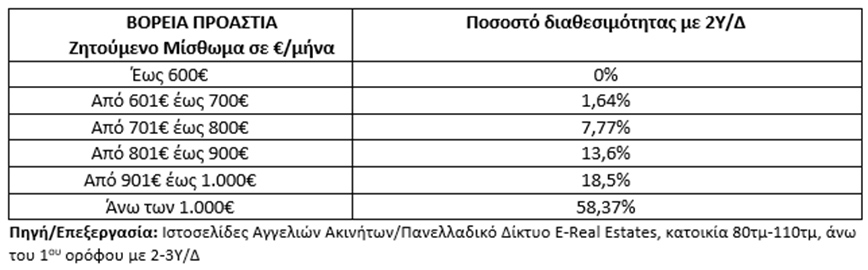 Στις περιοχές των βορείων προαστίων, το 90,47% (9 στα 10) των διαθέσιμων προς μίσθωση