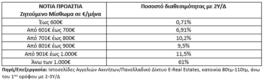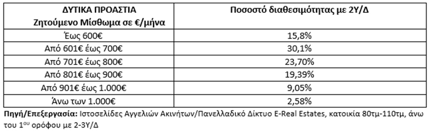 οικογενειακών κατοικιών (80-110 τμ, άνω του 1 ου ορόφου) έχουν ζητούμενο μίσθωμα άνω των