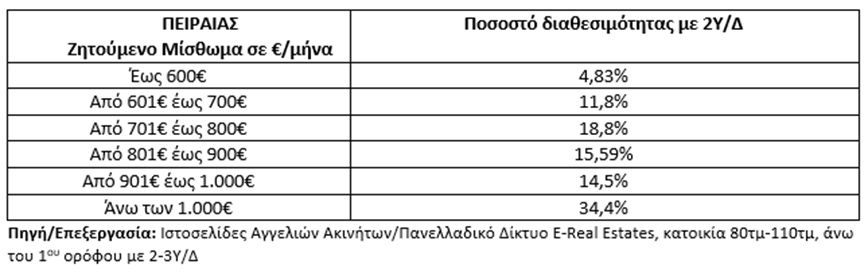 Πειραιάς: 8 στα 10 ακίνητα άνω των 700 ευρώ ζητούμενο μίσθωμα εκ των οποίων τα 3