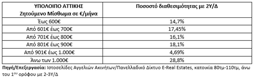 Υπόλοιπο Αττικής: 7 στα 10 ακίνητα έχουν ζητούμενο μίσθωμα άνω των 700€, εκ των οποίων