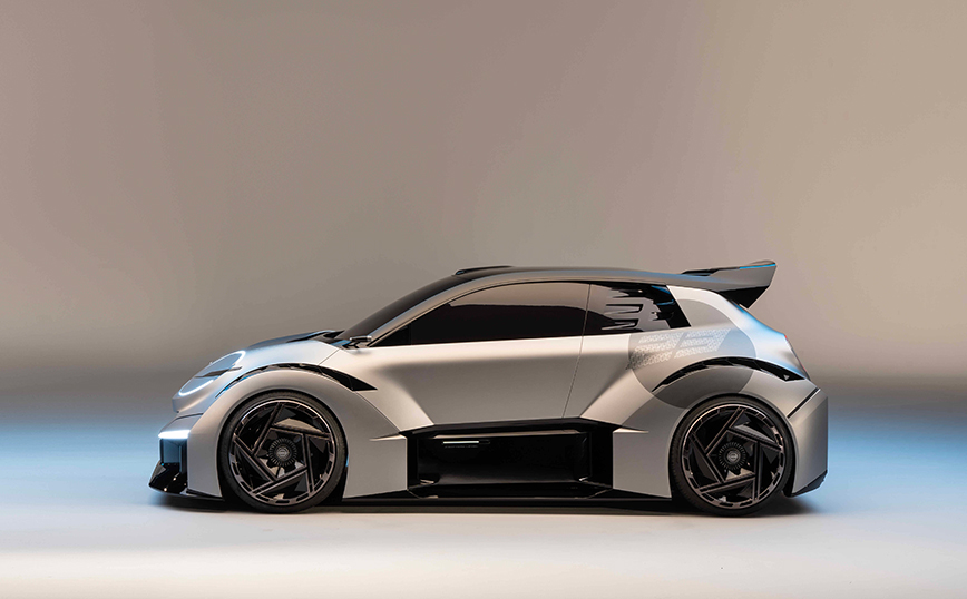 Η μοντέρνα ανατροπή σε αυτό το παιχνιδιάρικο μικρό αυτοκίνητο αντικατοπτρίζει τόσο τον κόσμο των διαδικτυακών αγώνων όσο και τη συμμετοχή της Ιαπωνικής φίρμας στη Formula E. Το 3θυρο hatchback Concept 20-23 διαθέτει εξαιρετικά αεροδυναμικά στοιχεία εμπρός και πίσω, τα οποία κατευθύνουν τη ροή του αέρα μακριά από το μπροστινό μέρος του αυτοκινήτου, μέσα από ανοίγματα για την ψύξη των φρένων και έξω, μέσω αεραγωγών ακριβώς πίσω από τους μπροστινούς τροχούς. Το εμπρός μέρος του αυτοκινήτου αποτελείται από ένα επίπεδο το οποίο συνεχίζει αρμονικά μέχρι την κορυφή του καπό, δίνοντας στο μπροστινό μέρος μια απροσδόκητα καθαρή επιφάνεια. Εδώ είναι τοποθετημένοι οι μπροστινοί προβολείς, με τη χαρακτηριστική εμφάνισή τους να αποτελείται από ένα λεπτό επάνω και κάτω ημικύκλιο και να ενισχύεται από μια αιχμηρή δέσμη χάρη στην τεχνολογία LED. Το φλας είναι μέρος της ίδιας ημικυκλικής μονάδας LED. Το αποτέλεσμα στο μπροστινό μέρος του Concept 20-23 είναι μια φιλική εμφάνιση, παρόλα τα πολύπλοκα σχήματα που διέπουν τη ροή του αέρα.